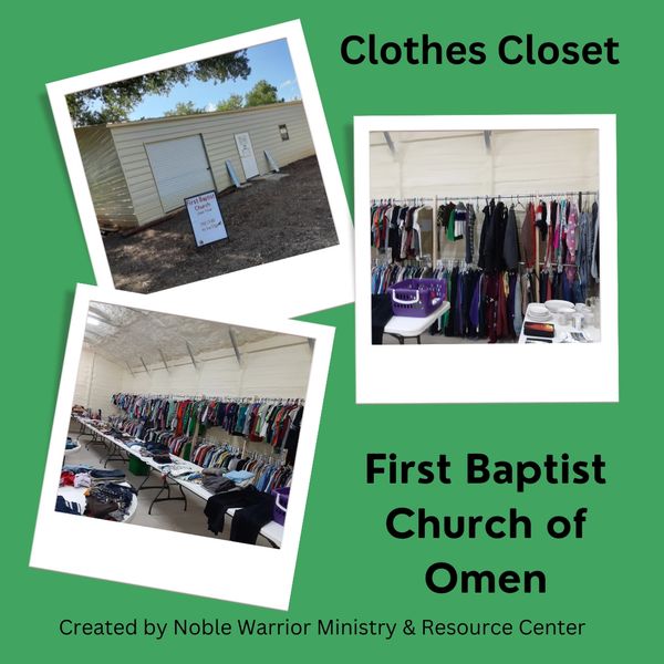 The year's first deep freeze cold front was about to hit the East Texas area as we approached November of 2022. "Oh Lord!" I cried. the cold about to hit us and so many people need coats and warm clothing. SOMEBODY should do something! God replied, "First Baptist Church of Omen is SOMEBODY." Thus, the First Baptist Church of Omen CLOTHES CLOSET was born!